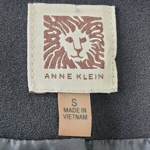 Gently used ANNE KLEIN BLACK CREPE GOLD ZIPPERS OPEN FRONT MOD STYLE JACKET COAT size S