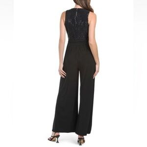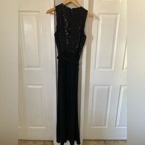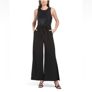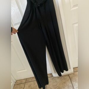 ANNE KLEIN BLACK JERSEY BELTED EMBELLISHED WIDE LEG JUMPSUIT SIZE 8