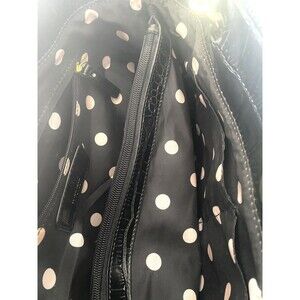 Interior functions include one center zip compartment, one zip pocket on the back wall and two front slip pockets Spot Clean