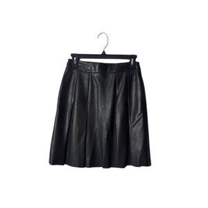 ANNE KLEIN Black Leather Pleated A-Line Skirt Size 8 Womens Professional Career