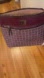 Great pre-loved condition Anne Klein burgundy and tan crossbody bag. Has zipper pocket in front and open flap pocket in the back. Zipper closure with zipper compartment inside; two slots inside. No