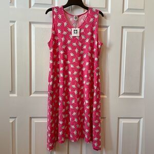 ANNE KLEIN CAMELLIA/ANNE WHITE COMBO SLEEVELESS HIGH LOW DRESS with SIDE POCKETS SIZE XL NWT