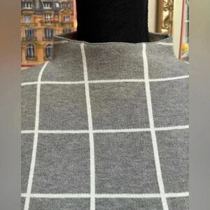 Super soft, notched sides , long sleeves, quality sweater that checks match up on both sides, this mock neck sweater is buttery soft and pre- owned in perfect condition. Measurements are pit to pit 22”, length 25”