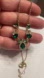 This stunning necklace features vibrant green stones set in a luxurious gold finish. Perfect for adding a touch of elegance to any outfit.  It is signed Anne Klein and measures 6” with a 2.5” extender