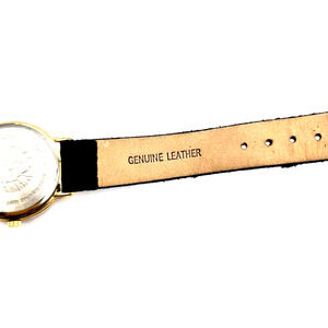 ANNE KLEIN Diamond Collection Watch Black Leather Band Black Dial Gold Letters