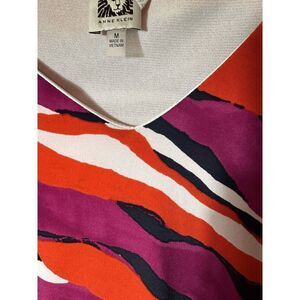 ANNE KLEIN Dress M Multi Colorblock Polyester Dress Stripes Geometric Art
