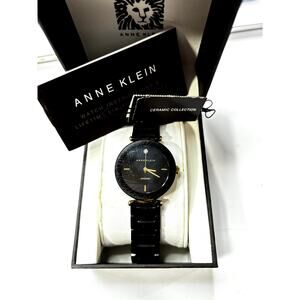 ANNE KLEIN Genuine Diamond Accent Black Ceramic Band Watch AK/1018BKBK