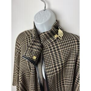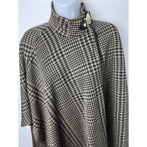 ANNE KLEIN High-Neck Plaid Sweater Cape One size