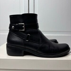 ANNE KLEIN Iflex Lynzee Black Leather Ankle Boots Size 6.5