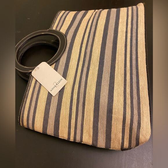 Brand new ANNE KLEIN summer tote. Tags still attached. Has round leather handles and trim. Plenty of room for your essentials plus a tablet or a magazine. A perfect pool/beach bag!