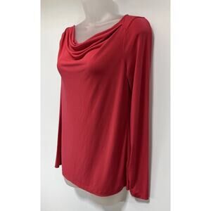 ANNE KLEIN LADIES LS COWL RUCHED SOLID PINK TOP TUNIC BLOUSE SHIRT M