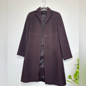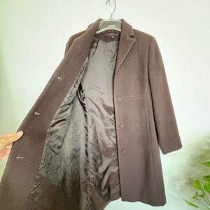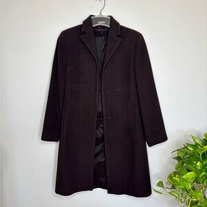 ANNE KLEIN Lambswool & Cashmere Coat Choco Brown Petite 1P Classic Timeless