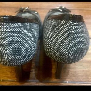 Black white tweed shoe faux patent leather trim stacked heel 3” Excellent condition worn once