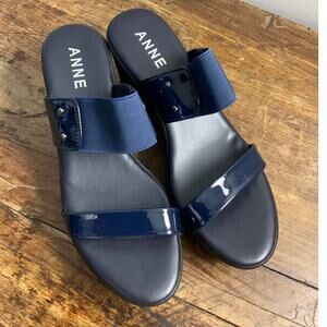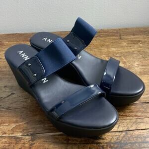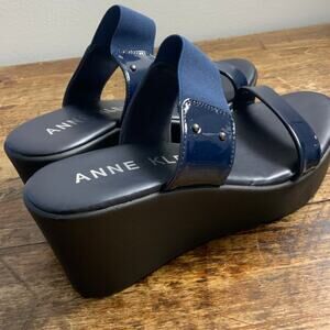 ANNE KLEIN Parker Wedge Sandal In Navy size 6.5