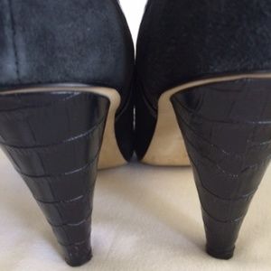 Anne Klein suede and leather heels.....zip side closures.....embossed leather 3 3/4" heels.....elastic insert over instep