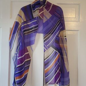ANNE KLEIN SILK GEOMETRIC GRAPHIC SCARF WRAP PURPLE BLACK WHITE TAN ORANGE