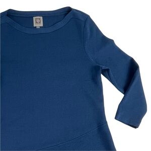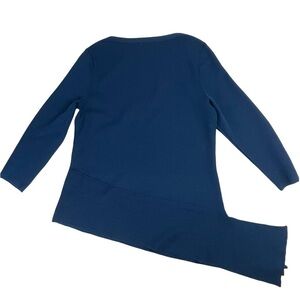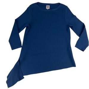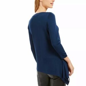ANNE KLEIN SPRUCE BLUE 3/4 SLEEVE ASYMMETRIC HEM BOAT NECK SWEATER