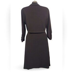 ANNE KLEIN 🍒LADIES SIZE 2 SIZE XS SMALL 🍒BLACK COLLARED DRESS LONG SLEEVES OR TABBED SLEEVES GOLD FRONT ZIPPER AND BUTTON DETAILS TIE WAIST