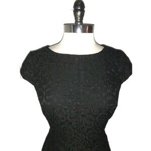 ANNE KLEIN Size 10 A-Line Dress Black Lace Cap Sleeve Knee Length