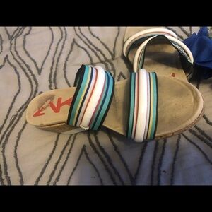 ANNE KLEIN Striped Slide Sandals with Metal Accent/size 6