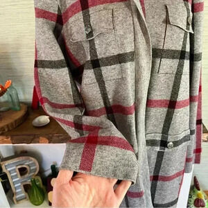 ANNE KLEIN Sweater Jacket Coat Plaid Woman’s Size Large Zip Pockets Long Shacket