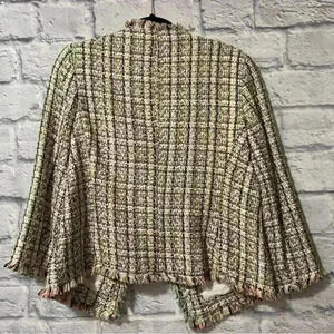ANNE KLEIN Tweed Fringe Blazer Marine Red / Blue Combo Jacket Size 8