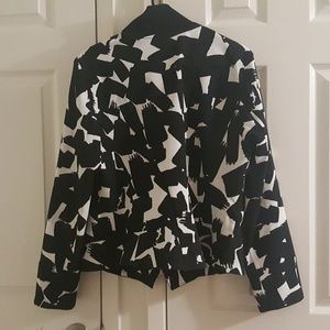 ANNE KLEIN Unique Black White Geometric Design Full Zip Jacket
