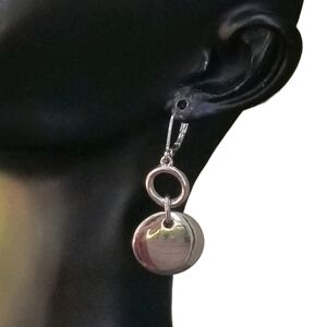 ANNE KLEIN VINTAGE SILVERTONE DISK DROP HOOK EARRINGS