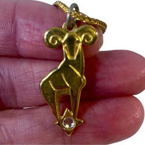 ANNE KLEIN Vintage Aires Zodiac Rhinestone Pendant Necklace March 21 - April 19