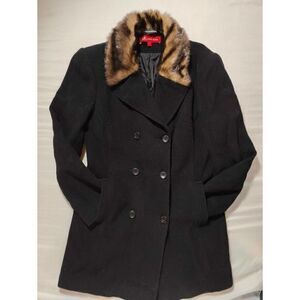 ANNE KLEIN WOMENS FAUX-FUR CLUB COLLAR COAT BLACK CHEETAH SMALL PREOWNED