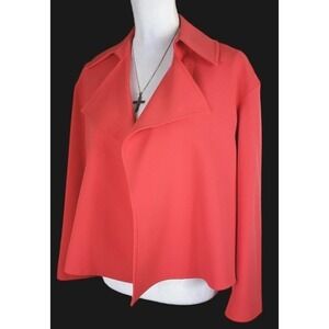 ANNE KLEIN ~Woman Size 8~ Coral Red Cascade-collar Open-front Blazer Jacket Top.