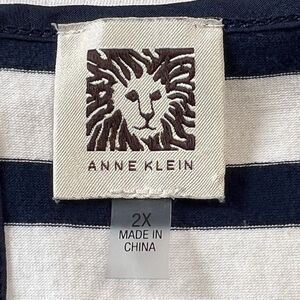 ANNE KLEIN Women's Blouse Striped Navy Blue / White Size 2X Summer Travel