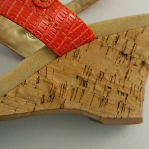 ANNE KLEIN i FLEX CORK, CROCO, SLING BACKSANDAL, ORANGE/RED, GOLD HARDWARE