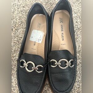 ANNE KLIEN Nayeli Textured Boat Shoe Black Loafer GUC