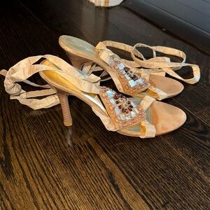 ANNE MICHELLE HANDMADE BOHEMIAN WRAP AROUND HEELED SANDALS SIZE 9