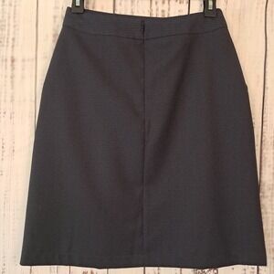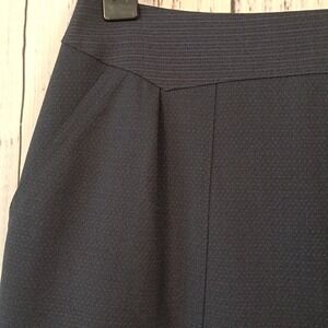 ANNE WILLI Paris S Dark Blue Extrafine Wool A-Line Skirt Pockets Knee Length