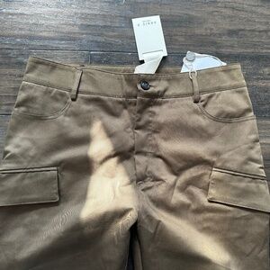 These are that style that are skinny at the hem which is shorter than typical and puffs out at the top - like an old school military pant. These are made in Italy from a high-end retailer. Size 27 and brand new with tags. Note: the zipper on one of the hems is a bit finicky. These have a $400 retail.