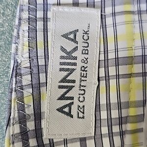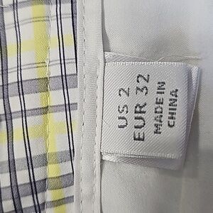 ANNIKA YELLOW AND GRAY PLAID BERMUDA SHORTS. SIZE 2. 3 POCKETS. GREAT