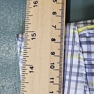 These shorts are made with fabulous fabric. in excellent condition and quality. Waist flat measurement is 15". inseam is 11". The top to bottom length is 27". Great used condition. Consider making a bundle and get an even better offer.