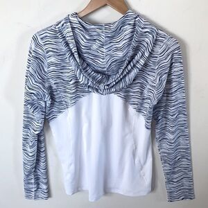 ANNIKA by Cutter & Buck Women's Moisture Wicking Drytec UPF 50+ Long Sleeve 3/4 Zip Hoodie, Navy Blue and White striped