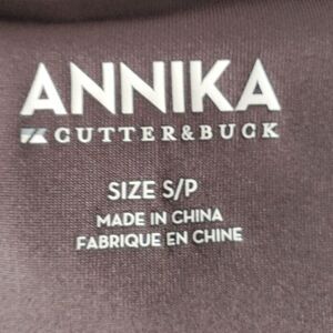 Brown and white detail golf shirt, with hints of cranberry color on collar. In excellent condition.