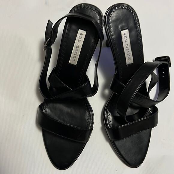 ANN MARINO BLACK LEATHER SANDALS OPEN TOE SIZE 11 M
