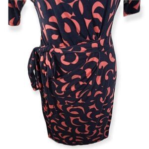 ANN TAYLOR BLACK & CORAL/PINK FAUX WRAP DRESS SZ.S GUC. GORGEOUS DRESS IN GOOD CONDITION. SHOWS NORMAL WEAR BUT STILL BEAUTIFUL.