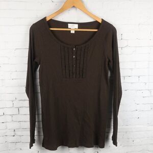 ANN TAYLOR LOFT MATERNITY DARK BROWN LONG SLEEVE ROUND NECK RIBBED TOP SIZE S