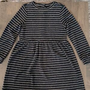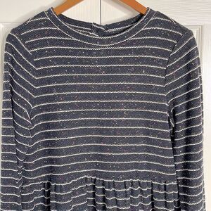 ANN TAYLOR LOFT Navy Blue & White Striped Long Sleeve Drop Waist Dress | Small