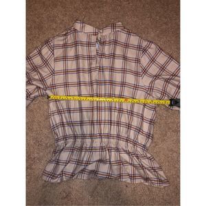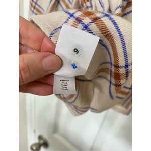 ANN TAYLOR NWT Soft Tan Plaid Gathered Waist Pullover Flannel TOP, Size Large P