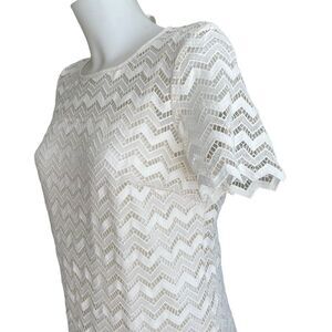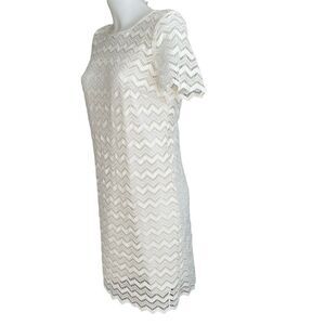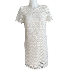 ANN TAYLOR Off White Lace Chevron Sheath Mini Dress Short Sleeve Women Size 6