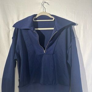 Upgrade your style with this chic blue zip-up jacket. Ideal for layering and adding sophistication to any look.