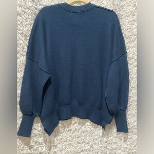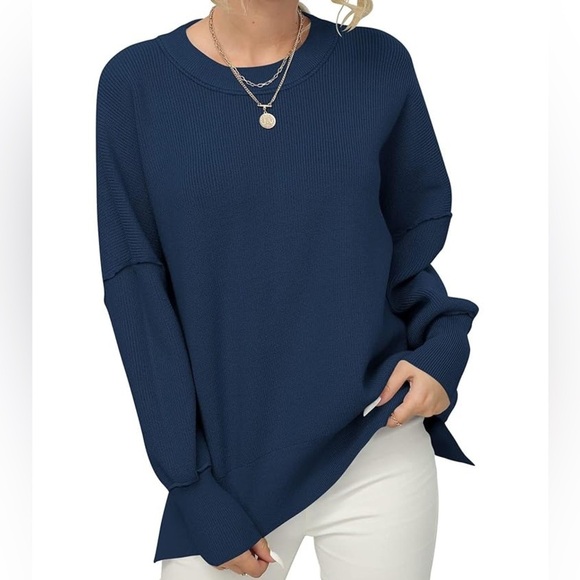 Stylish blue knit sweater by ANRABESS. Perfect for cozy days.CREW NECK BATWING LONG SLEEVES, RIBBED KNIT PULL OVER, SIDE SLIT, SLOUCH OVERSIZED, 50% VISCOSE, 30% NYLON, 20% PBT. PRE OWNED IN EXCELLENT CONDITION: