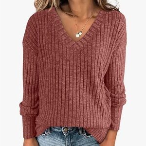 Features - Women's Casual lightweight sweater, v neck, drop shoulder, long sleeve shirts,fuzzy fabric sweater, side split. The women tops great for casual daily wear, school, office, work,shopping,vacation, travel,going out.The lightweight sweater goes well with jeans, shorts, leggings, or skirts.